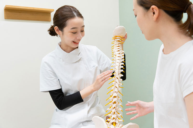 姿勢のバランス、触診などの検査をして、背骨のゆがみを調べます。